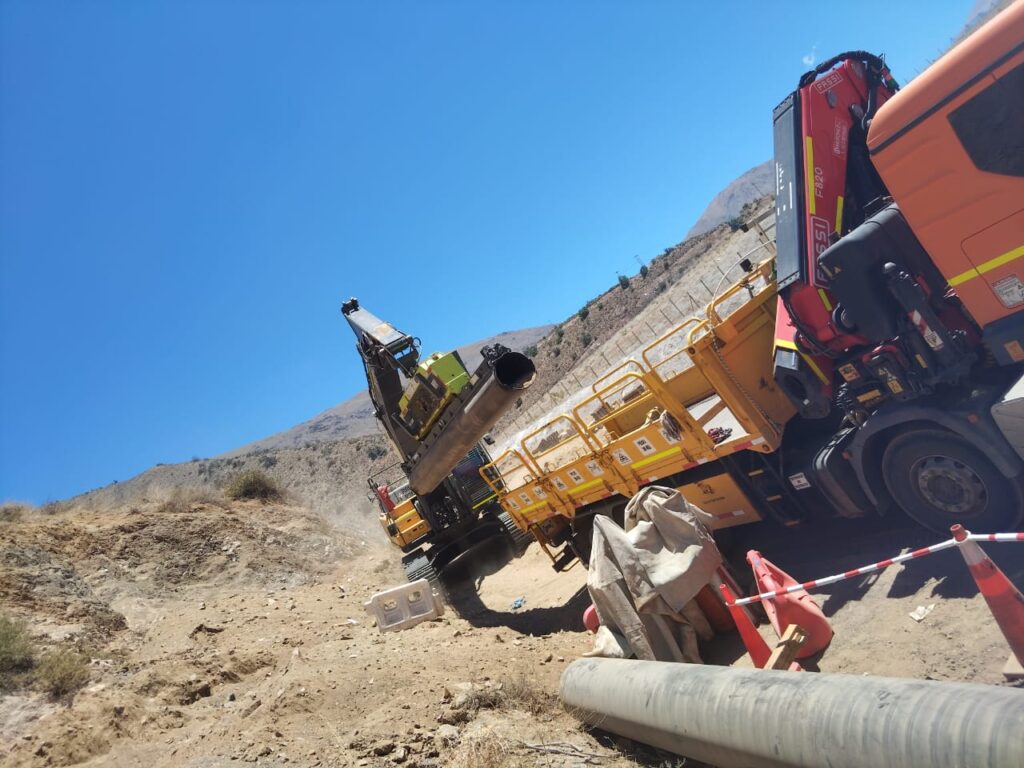 Las maniobras tradicionales de carga y posicionamiento exigen una alta dotación de personal, exponiéndolos a la «línea de fuego» (riesgos de atrapamiento y sobreesfuerzo). A esto se sumó el factor geográfico: operar a 2.800 m.s.n.m., donde la baja presión atmosférica y el clima extremo ponen a prueba la fiabilidad de cualquier equipo hidráulico o mecánico.